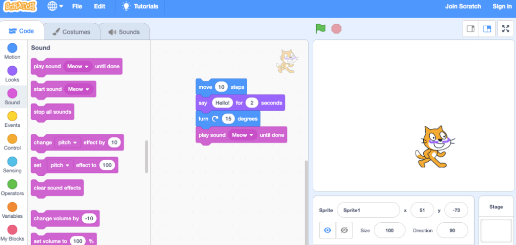 Scratch is a program-based-learning application that allows users to create their own interactive stories, games and animations. Scratch is used as a tool for game creation that can be used to tailor individual learning opportunities for different student needs (Scratch, 2007). This can be accomplished as the teacher can design quizzes, games and classes that target students’ skills. Scratch can be used to assist students in learning to think creatively and develop deeper thinking skills that can be used in the 21st century (Scratch, 2007). This application has the means to form lessons around the different KLA’s such as English, Mathematics, History, Geography and Science (ACARA, 2015). Creativity can be encouraged through the use of Scratch as students use skills to test, plan and construct their game or animations, throughout this process students are constantly testing their creation using their problem-solving skills (Squire, 2006). Whilst scratch has the capability to enhance student learning, I found that without explicit instruction, the program can be difficult to navigate and use efficiently as both the teacher and the student.